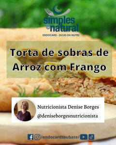No Simples e Natural dessa semana, a Dra. Denise Borges, @deniseborgesnutricionista, nutricionista na Endocard Medicina Diagnóstica, ensina uma deliciosa receita de Torta de sobra de Arroz com Frango. Confira os ingredientes: